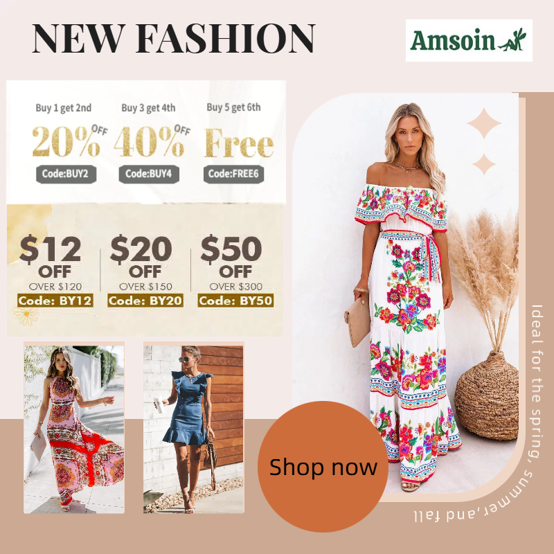 Amsoin Casual Off Shoulder Solid Beach Maxi Dress