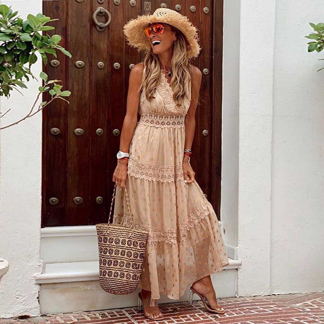 Amsoin Feel Your Best Boho Print Sleeveless Maxi Dress