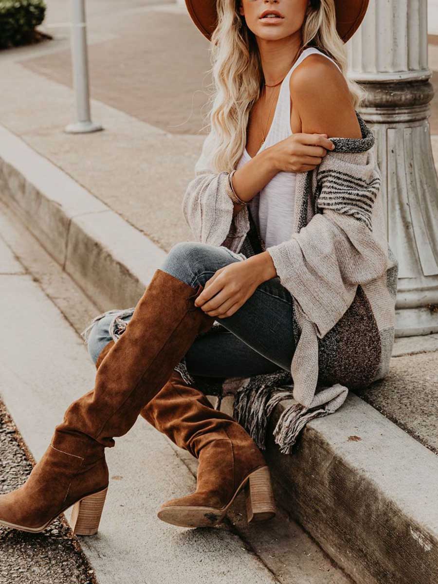 Amsoin Color Block Knitting Tassel Cardigan