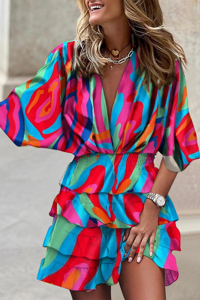 Amsoin Sweet Elegant Floral Patchwork V Neck Cake Skirt Dresses