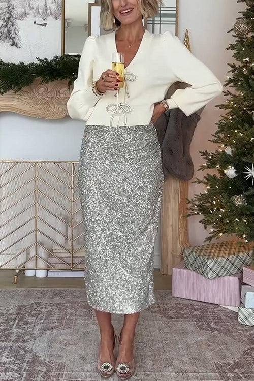 Achieve a sweet, timeless look with this V Neck Bow Knot Front Sweet Sweater. Its V neck and bow knot detail create a sleek silhouette and add a touch of femininity to any ensemble. Crafted with care, it'll keep you warm and stylish all season long.