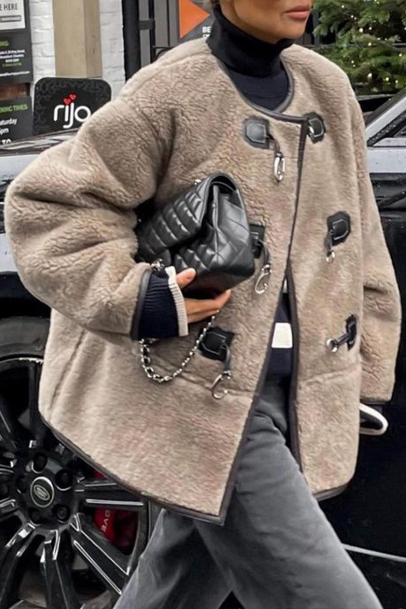 British Style Elegant Solid Buttons U Neck Outerwear