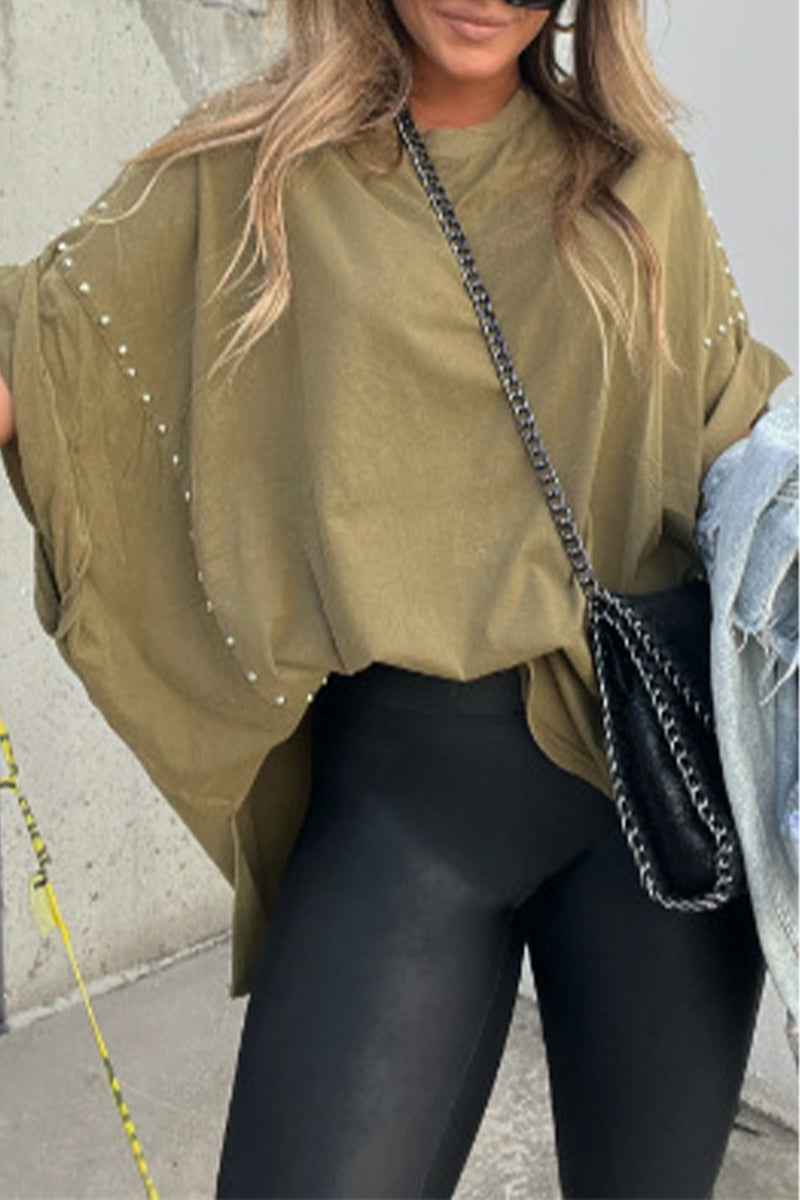 Casual Solid Rivets Make Old O Neck T-Shirts